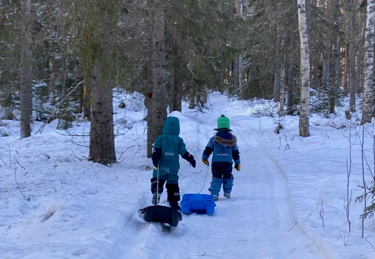 Aunque la vida de Axo y Coyo en el kinder es una parte que desconozco, como casi todas las mamás y los papás del mundo (excepto por las maestras que también tienen hijos y que al menos se pueden imaginar más cómo es la vida de los niños en el kinder), siempre es lindo verlos interactuar en su «habitat». También es interesante experimentar cómo los nórdicos se divierten y le dan color a la nieve.
