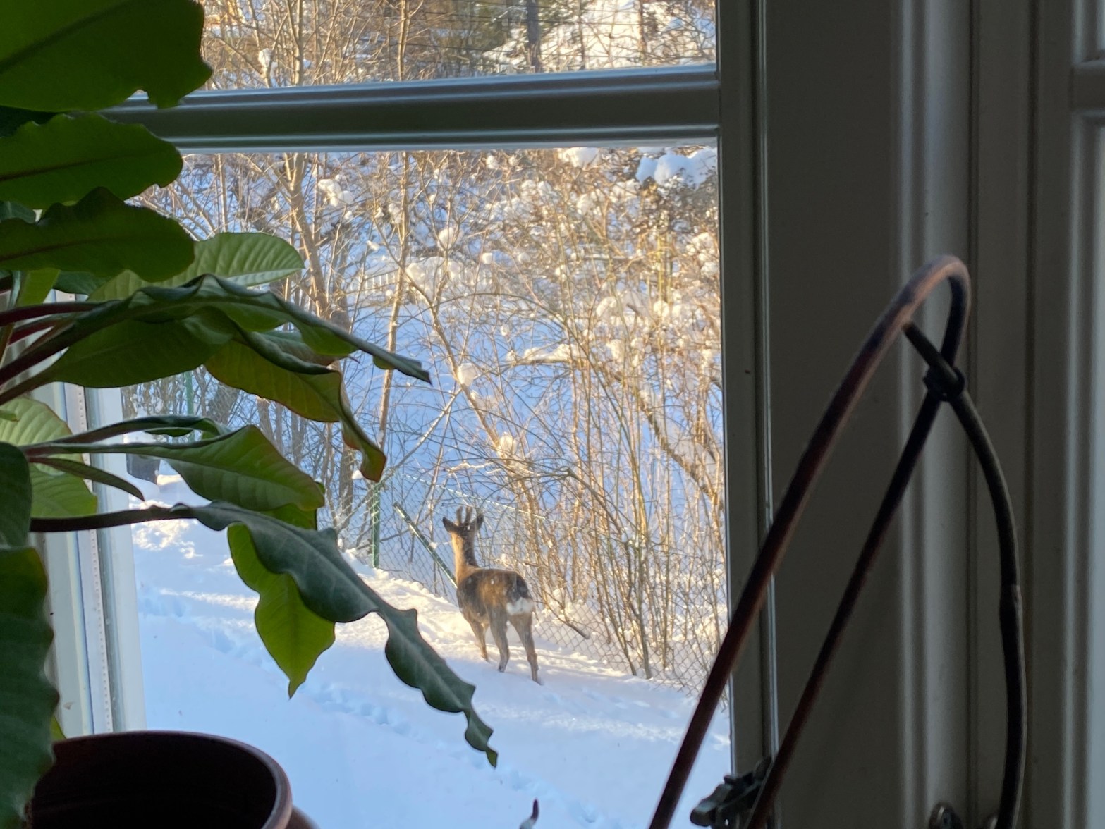Para nuestra sorpresa, más bien para nuestro shock, se trataba del venadito completamente destripado :-(. Se encontraba su cadáver en el jardín trasero de la casa, justo donde da nuestra ventana del comedor. No podíamos creerlo. En ese momento comprendí que a las 5-6 am estaba enfrentando su última batalla ese pobre cérvido. Nunca supimos quién fue el predador, pero imaginamos que fue un zorro. Ya por algunos comentarios del vecino que nos ayudó a decidir dónde enterrarlo, y también después al investigar qué animales viven en esta región de Suecia.