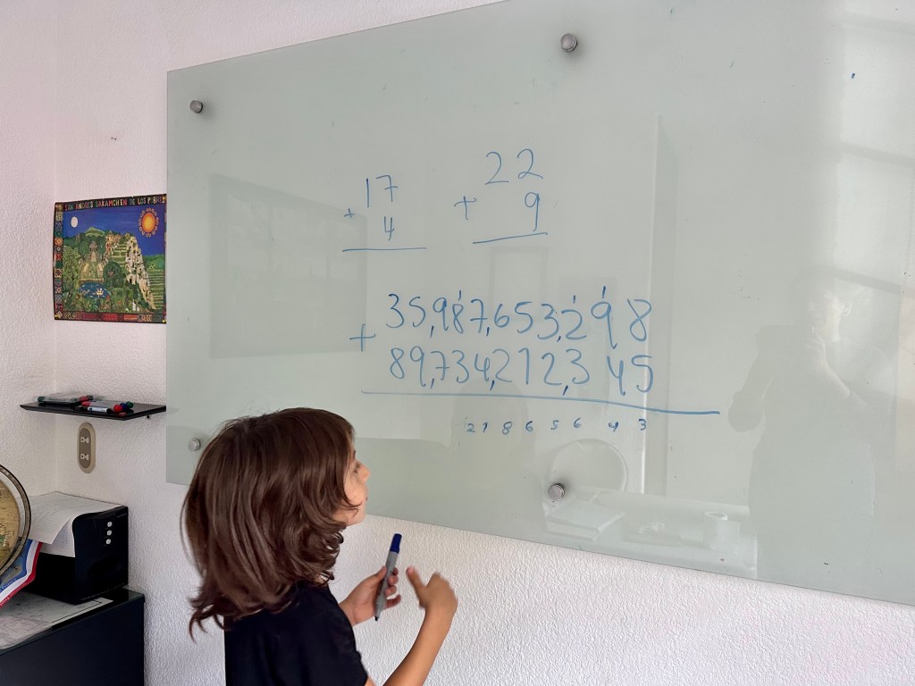Ahora, las responsabilidades son diferentes, pero no por eso menos importantes. Al contrario, creo que Feli y y nos metimos en menudo lío: home schooling o escuela en casa, donde el plan de estudio lo elaboramos nosotros mismos, basados en los currículos escolares de Alemania, México, y también metiéndole un poco del método sueco. No ha sido tan fácil pasar del papel de madre/padre, al de maestra/maestro. La escuela en casa lleva ya 3 semanas y hasta ahora parece que la cosa no pinta tan mal.
