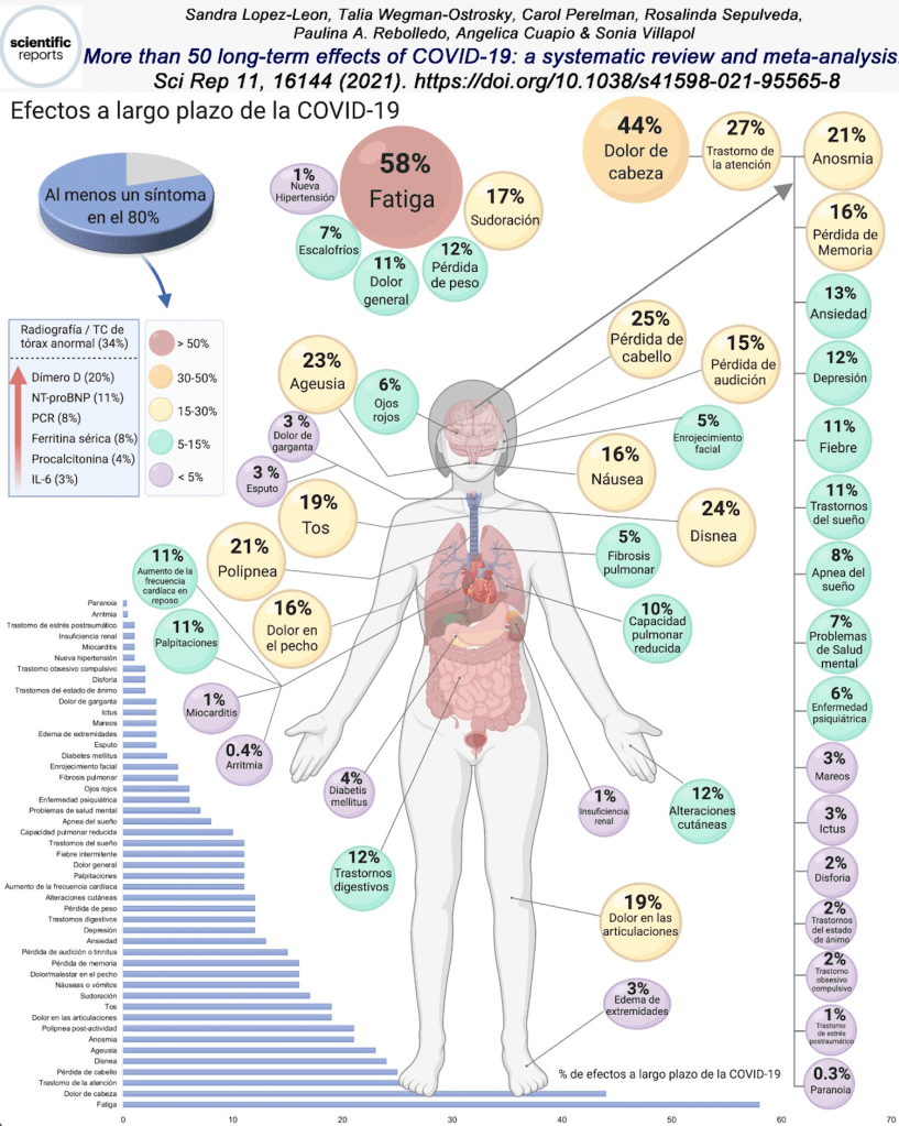 - Lopez-Leon S, Wegman-Ostrosky T, Perelman C, Sepulveda R, Rebolledo PA, Cuapio A, et al. More than 50 long-term effects of COVID-19: a systematic review and meta-analysis. Sci Rep. 2021;11(1):16144.