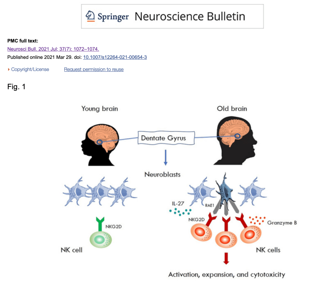 - Cuapio A, Ljunggren HG. Activated Natural Killer Cells Hit Neurogenesis in the Aging Brain. Neurosci Bull. 2021;37(7):1072-4.