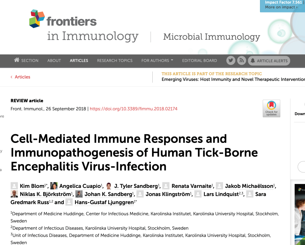 - Blom K, Cuapio A, Sandberg JT, Varnaite R, Michaelsson J, Bjorkstrom NK, et al. Cell-Mediated Immune Responses and Immunopathogenesis of Human Tick-Borne Encephalitis Virus-Infection. Front Immunol. 2018;9:2174.