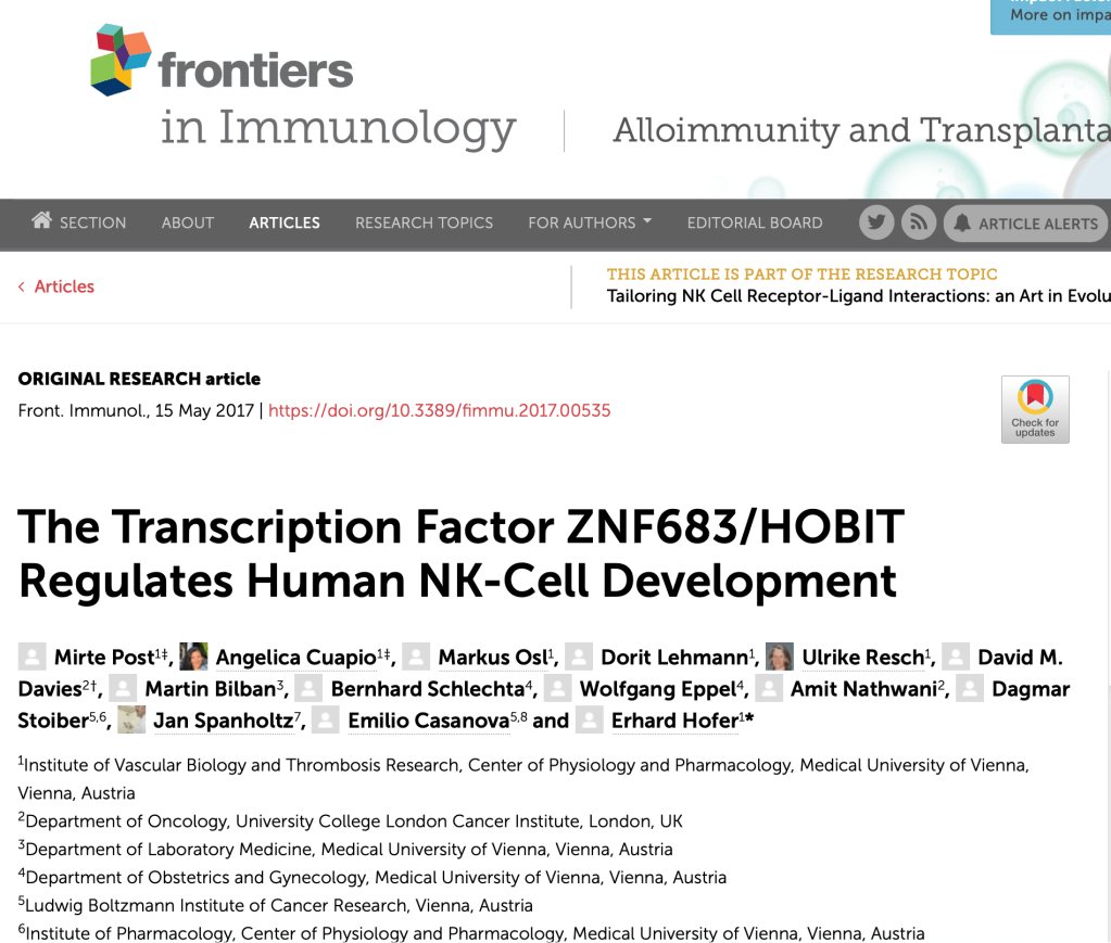 - Post M, Cuapio A, Osl M, Lehmann D, Resch U, Davies DM, et al. The Transcription Factor ZNF683/HOBIT Regulates Human NK-Cell Development. Front Immunol. 2017;8:535.