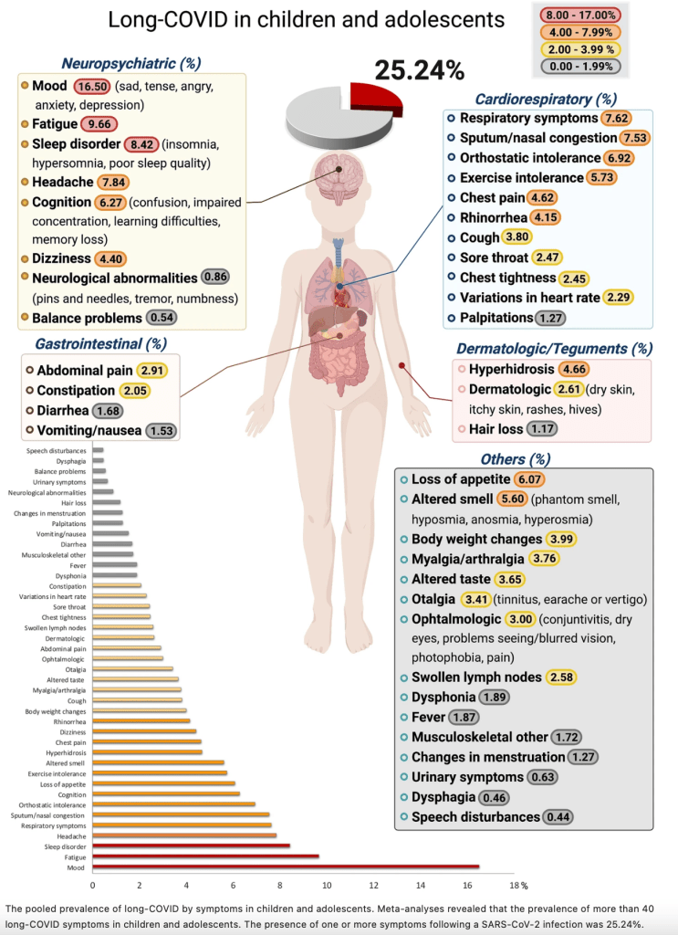 Lopez-Leon, S., T. Wegman-Ostrosky, N. C. Ayuzo Del Valle, C. Perelman, R. Sepulveda, P. A. Rebolledo, A. Cuapio and S. Villapol (2022). «Long-COVID in children and adolescents: a systematic review and meta-analyses.» Sci Rep 12(1): 9950.